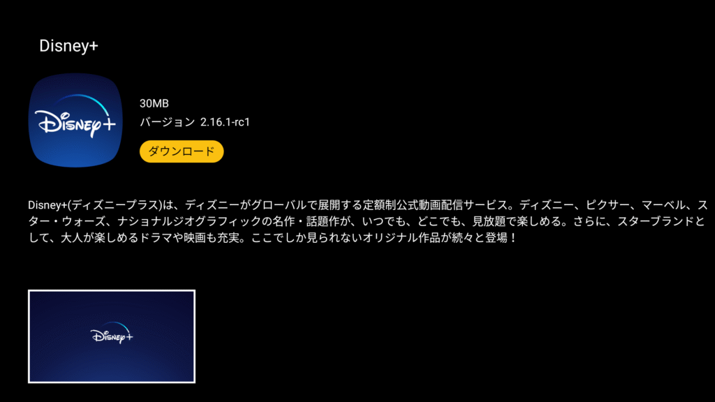 「インストール」を押すと数分でダウンロードが完了し、ホーム画面にDisney+アイコンが追加されます。