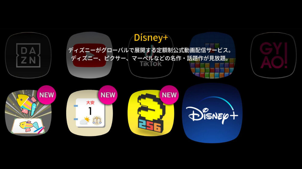 初代ポップインアラジンではDisney+が公式対応していませんでしたが、ポップインアラジン2ではアプリストアに正式対応し、本体だけでDisney+を楽しめるようになりました。